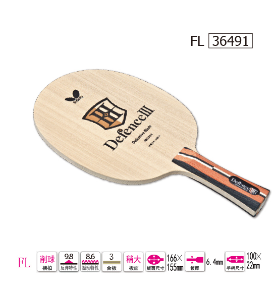 Butterfly蝴蝶36491 Defence Ⅲ-FL36491 注重進攻威力的削球底板 橫拍 原木色