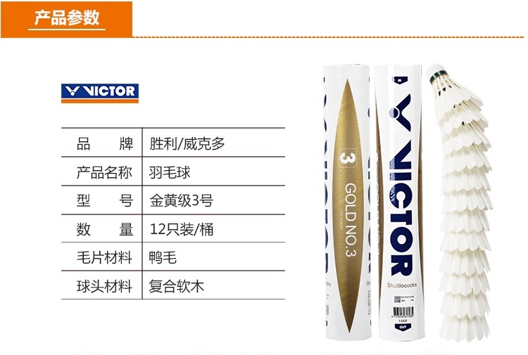 威克多VICTOR 勝利金黃3號(hào)羽毛球 訓(xùn)練比賽用球 穩(wěn)定耐打 12只裝